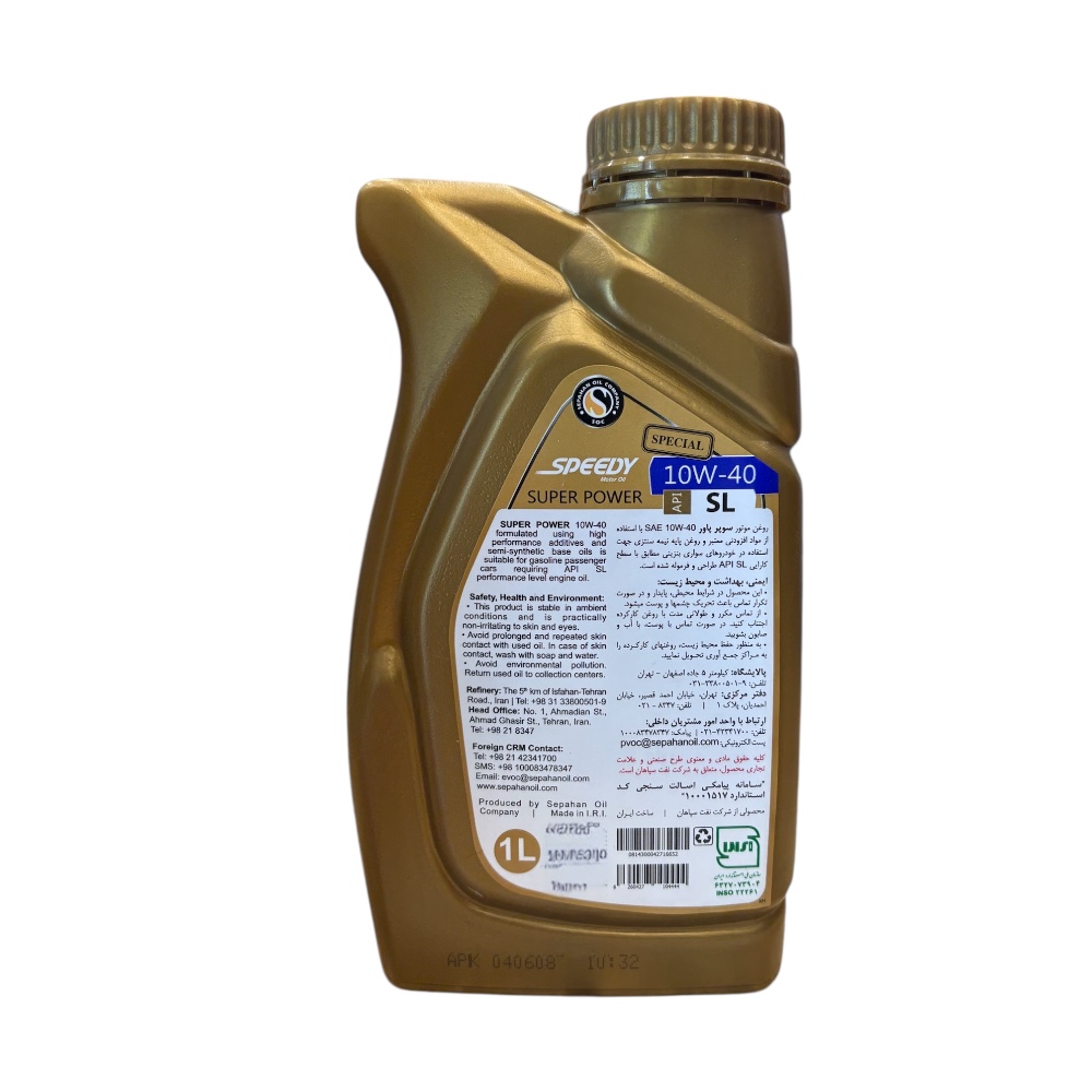 روغن موتور اسپیدی مدل سوپر پاور 10W40 SL، انتخابی ایدهآل برای موتورهای بنزینی و دیزلی است. با فرمولاسیون پیشرفته، این روغن عملکرد موتور شما را بهینه میکند و از سایش و خوردگی جلوگیری مینماید. با حجم 1 لیتر، این محصول دوام و کیفیت موتور خودروتان را تضمین میکند. بهرهوری بالا و حفاظت بینقص را با اسپیدی تجربه کنید!