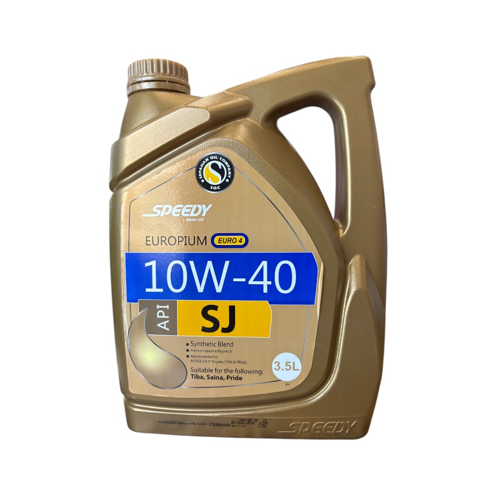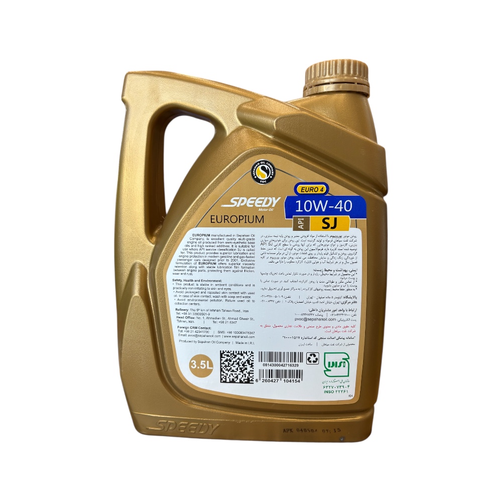سطح کیفیت و گرانروی یکی از عواملی بوده که در انتخاب روغن موتور تاثیر بسیاری دارد. روغن موتور اسپیدی که در تصویر مشاهده میکنید دارای گرانروی 10W40 و همچنین سطح کیفیت آن معادل API SJ مشخص شده است. تمام این موارد روی بسته بندی روغن موتور اسپیدی مدل Europium 10W-40 قابل مشاهده و تشخیض خواهد بود. روی بسته بندی این روغن موتور نام چند خودرو قابل مشاهده است که شامل پراید، تیبا و ساینا است پس میتوان از این روغن موتور برای این خودروها استفاده کرده و سواری خوبی را تجربه کرد. روغن موتور اسپیدی مدل Europium 10W-40 با استفاده از مواد افزودنی معتبر با تکنولوژی و سطح کارایی عالی و با روغن پایه نیمه سنتتیک مطابق با سطح کارایی API SJ فرموله و تولید گردیده است که این ویژگیهای در نهایت باعث میشود قطعات موتور در برابر سایش، خوردگی و زنگ زدگی مقاوم باشند.