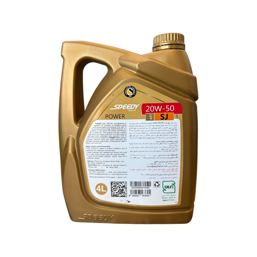 روغن موتور اسپیدی مدل پاور 20W50 SJ با حجم 4 لیتر، انتخابی ایدهآل برای حفاظت و بهینهسازی عملکرد موتور خودرو شما است. این روغن با فرمولاسیون پیشرفته، موجب کاهش اصطکاک و افزایش عمر مفید موتور میشود. مناسب برای خودروهای جادهای و شهری، به موتور خود قدرتی جدید ببخشید!