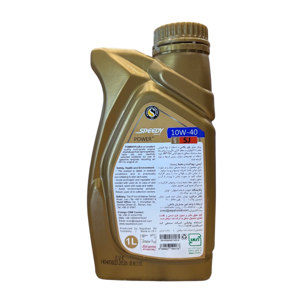 روغن موتور اسپیدی مدل پاور پلاس دارای استاندارد API SJ است که نشاندهنده کیفیت بالای این محصول در سطح جهانی است.